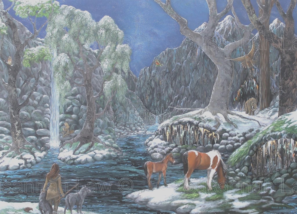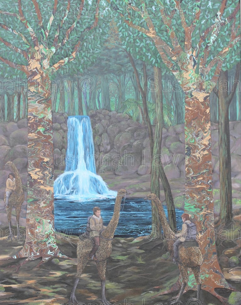 'Dreaming of Direwolves at Wairere falls' Acrylic 75cm x 100cm
