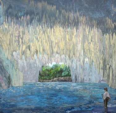 'Entering the sea cave' SOLD Acrylic on canvas 90cm x 120cm