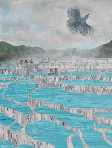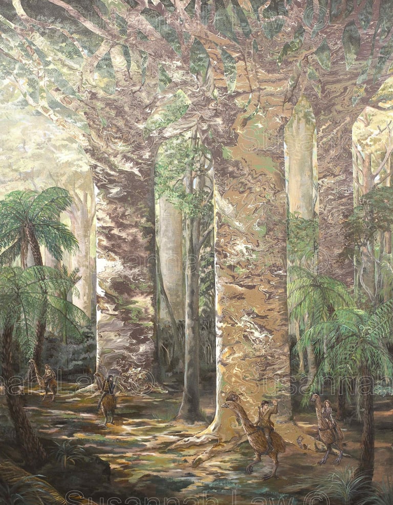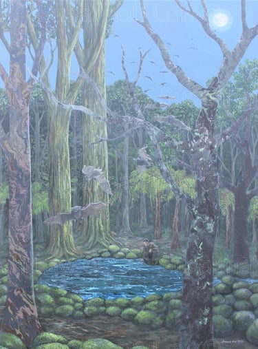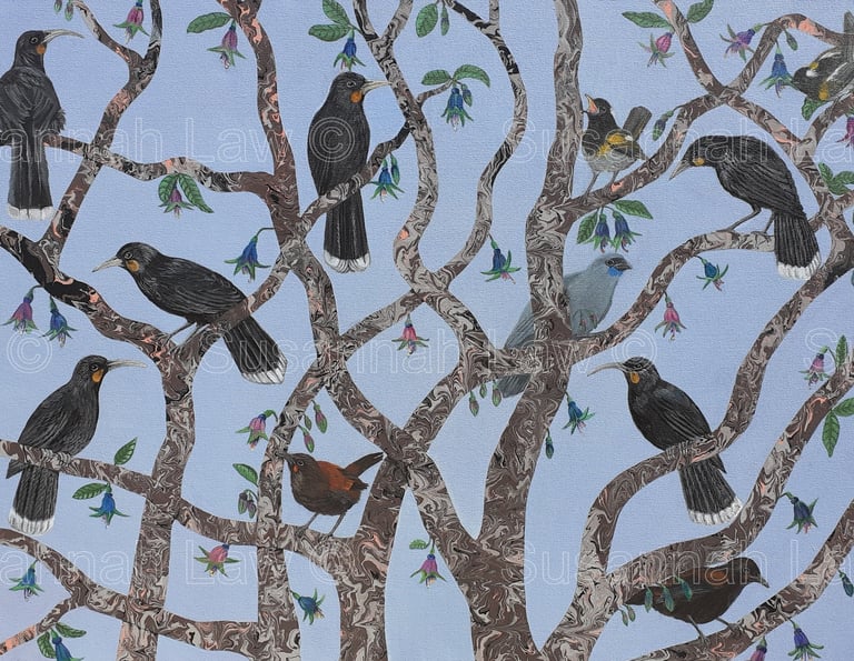 'The Kokako and the White Terraces' Acrylic on canvas 100cm x 76cm